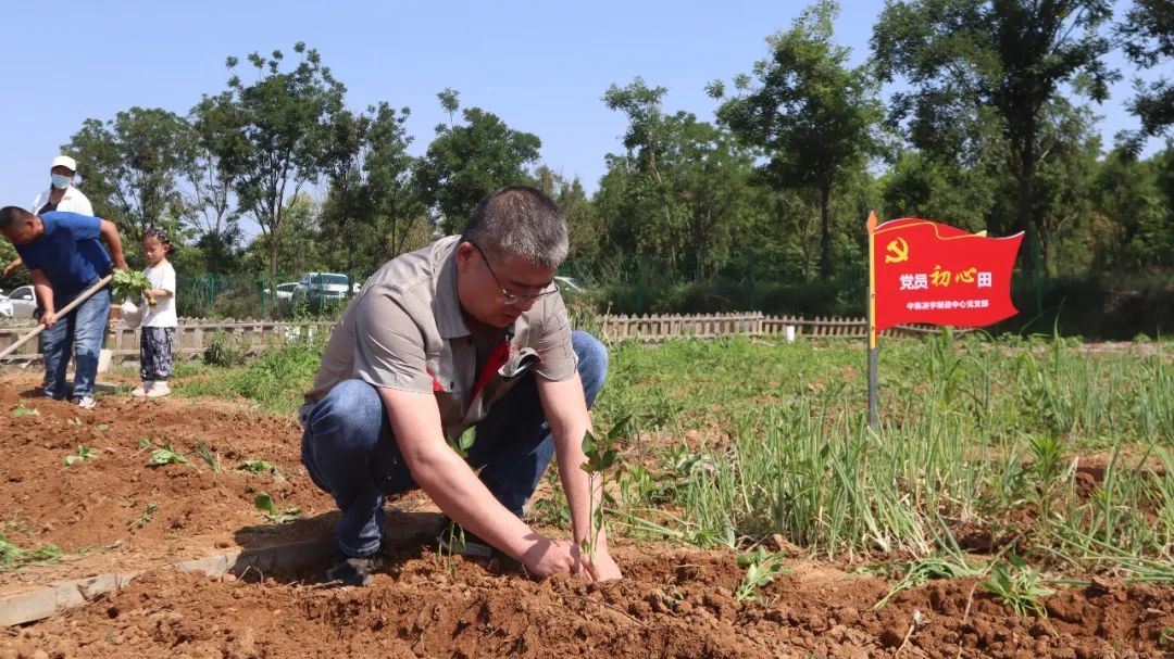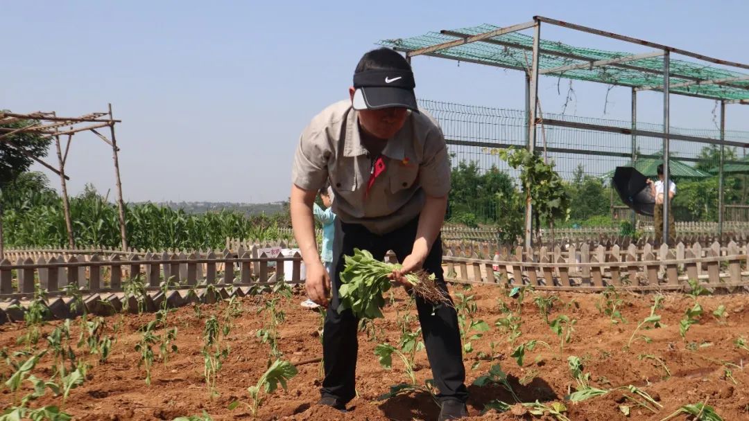 同志們分工協(xié)作,在有經(jīng)驗(yàn)的老同志指導(dǎo)和示范下,依次開展松土、起壟、插秧、澆水、培土等工作。汗水滴灑在泥土里,歡聲笑語回蕩在空氣中。活動中,還有不少黨員帶著孩子來到現(xiàn)場,讓祖國的下一代在了解種菜過程的同時,體驗(yàn)勞動果實(shí)的來之不易。